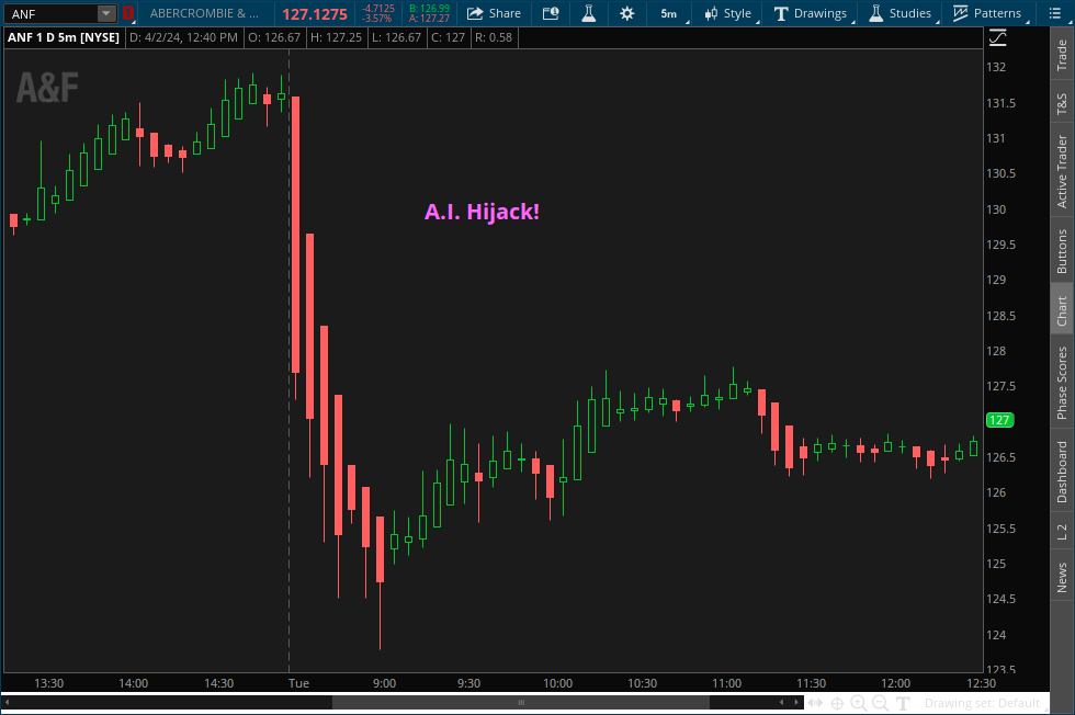 When ULTA opened this morning, the stock went on sale, the algos smelled blood, and you can see what happened.